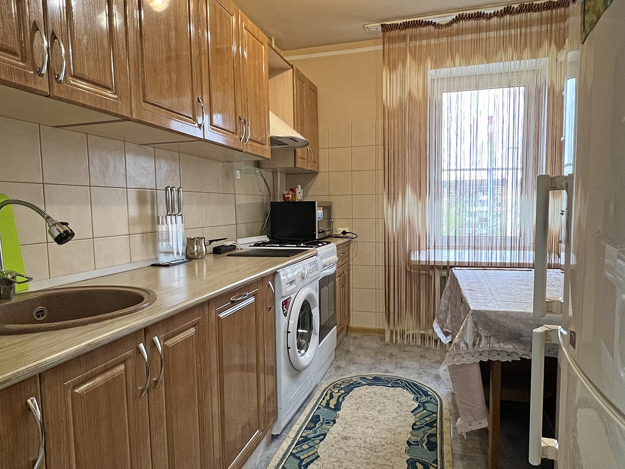 Квартира полностью укомплектована мебелью и бытовой техникой.